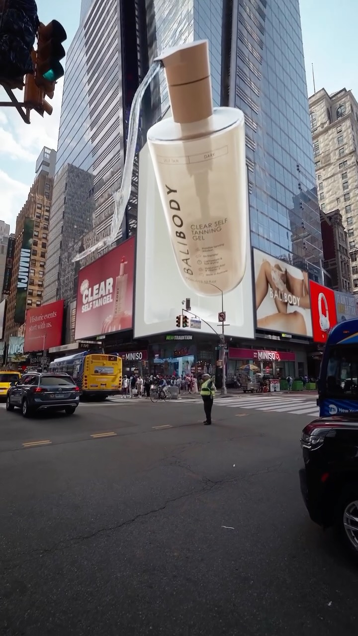 Magnifying products to larger-than-life proportions, this FOOH Ad announces Bali Body's arrival at Boots UK stores. The campaign transforms the retailer's iconic blue storefront into a product display case featuring oversized tanning products that command attention on busy streets. By combining consumer-requested retail expansion with dramatic visual representation, the FOOH Ad effectively communicates both availability and product range in a single impactful image.