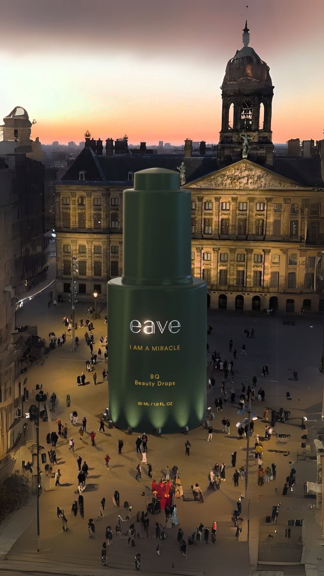 A massive billboard transforms into an opening gift box on a building facade, revealing oversized Bielenda Cherry Plum skincare products. The giant cosmetics display turns urban architecture into an unboxing experience, with the brand ambassador featured on the pink packaging. This Bielenda FOOH ad announces their new Cherry Plum collection, bringing the excitement of product reveal to life in a bustling city square.