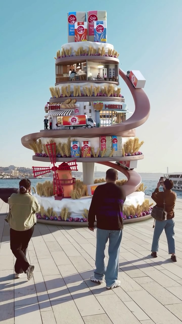 Giant Bocado food carts roll independently through the prestigious Palacio de Hierro shopping district. The oversized mobile treats—one carrying a massive gelato scoop and the other a towering focaccia sandwich—navigate the plaza as if on a casual stroll. This playful FOOH celebrates Bocado's second location announcement with a whimsical twist on food delivery, where the menu items themselves appear to venture toward customers.
