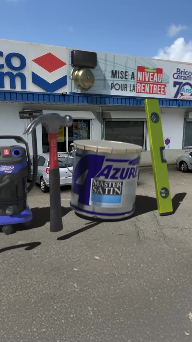 Giant spirit levels and Azur Satin paint cans invade the streets outside Bricoceram, announcing the ultimate back-to-school for DIY enthusiasts. Oversized yellow levels stand tall like street lamps while massive paint containers roll across crosswalks, transforming the everyday urban landscape into a playful hardware wonderland. This creative FOOH campaign captures Bricoceram's practical spirit, turning the brand's "Mise à niveau" catalog launch into a street-level celebration of home improvement possibilities.