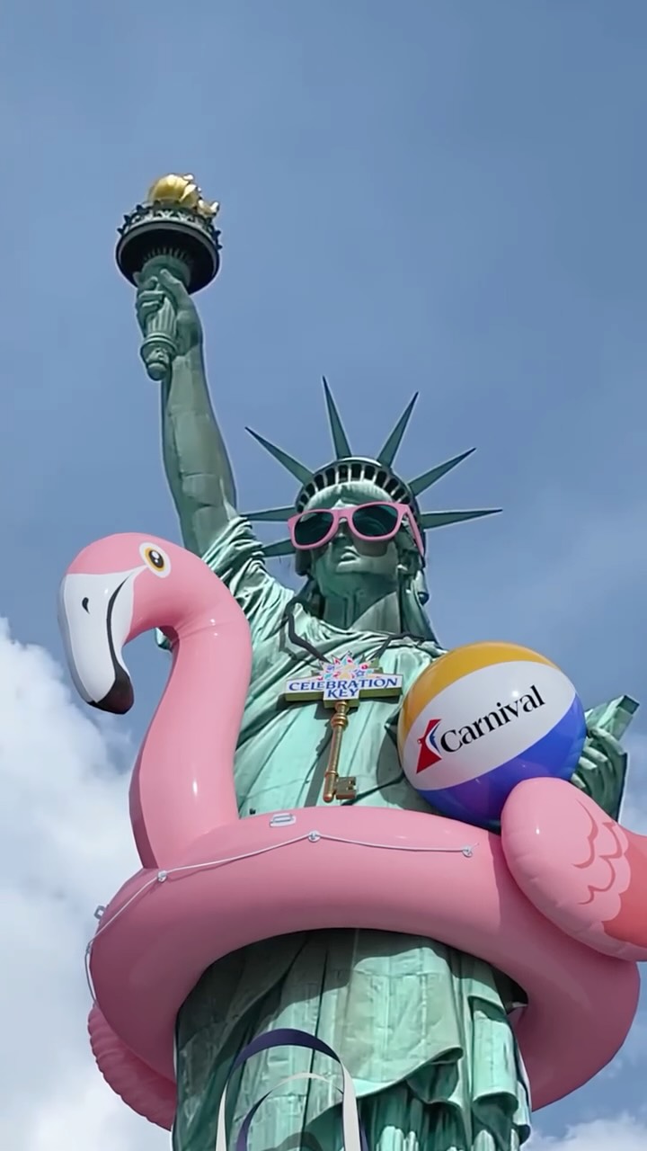 Oversized pink sunglasses materialize on Miami's pristine shoreline, transforming the beach into Carnival's tropical playground. The iconic "Celebration Key" branding comes to life through the lenses, revealing glimpses of paradise as beachgoers discover their gateway to adventure. This vibrant Carnival FOOH advertisement captures the cruise line's playful spirit and promise of escape, turning an ordinary beach day into an extraordinary invitation to find your key to paradise.