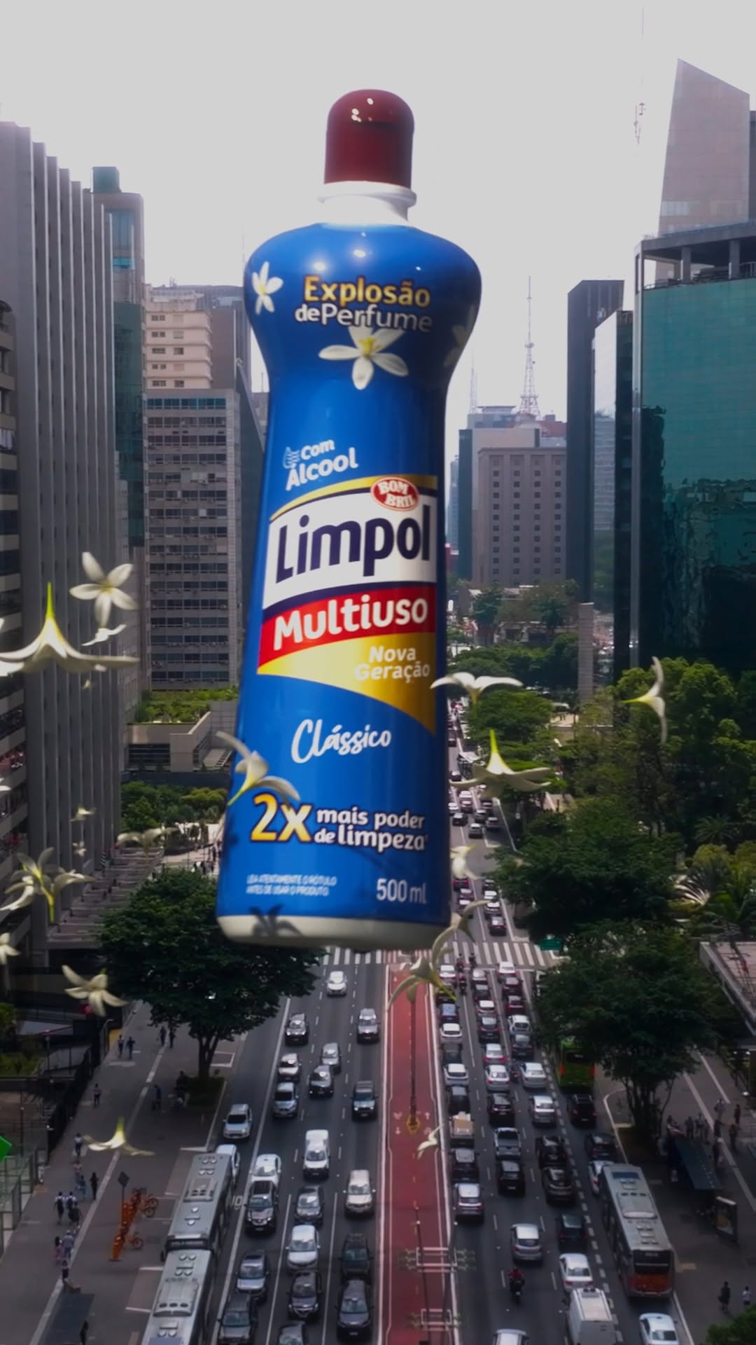 Animated General cleaning characters bring a traditional street scene to life. Yellow and green bottle mascots stand on balconies of a mint-colored building with oriental carpets, exchanging cleaning magic across floors. This playful FOOH advertisement showcases General's cleaning products through charming characters that interact with their urban environment.