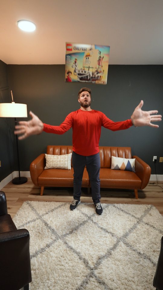 An oversized LEGO helicopter appears to have touched down in a Warsaw park, creating a striking FOOH experience. The bright red and orange rescue aircraft is shown in various states - flying overhead, hovering, and finally landing on the grass where a minifigure ground controller awaits the pilot. This creative digital campaign showcases LEGO's latest aerial vehicle set, transforming an ordinary public space into an emergency rescue scene that captures imaginations and highlights how LEGO brings play to life in unexpected urban settings.