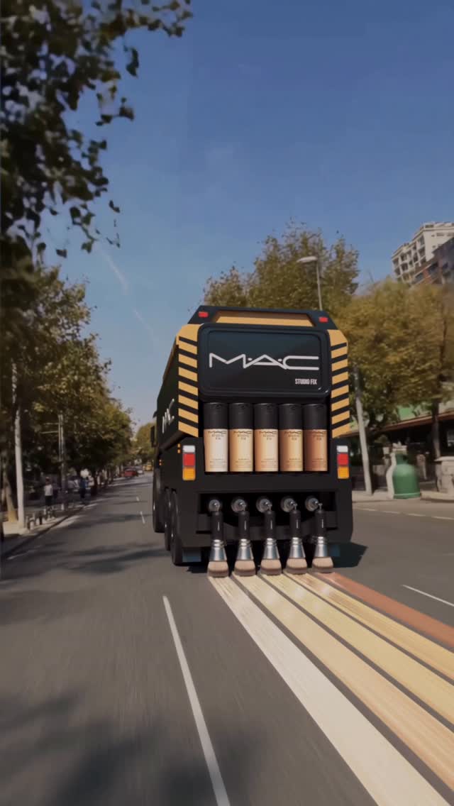 A massive lipstick billboard roll unfurls down a historic SoHo street, showcasing MAC's signature shades against New York's iconic cast-iron architecture. The oversized banner curves dramatically along the sidewalk, displaying bold lip colors from deep burgundies to vibrant corals. This National Lipstick Day campaign transforms the urban landscape into a beauty playground, capturing MAC's bold approach to color and self-expression in an impossibly grand scale.