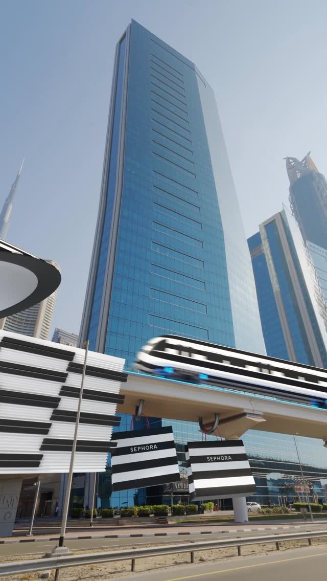 Giant Milk Makeup bottles cascade down the stairs of the modern Boots Battersea beauty store in this eye-catching FOOH advertisement. A massive pink Milk Makeup container stands upright while dozens of oversized product bottles in signature pink and white tumble around it, with a green Hydro Grip Primer prominently featured. The sleek glass architecture creates a striking backdrop for this playful product spill, announcing Milk Makeup's UK launch at Boots with a visual metaphor suggesting an abundance of trendy new beauty options now available to British consumers.