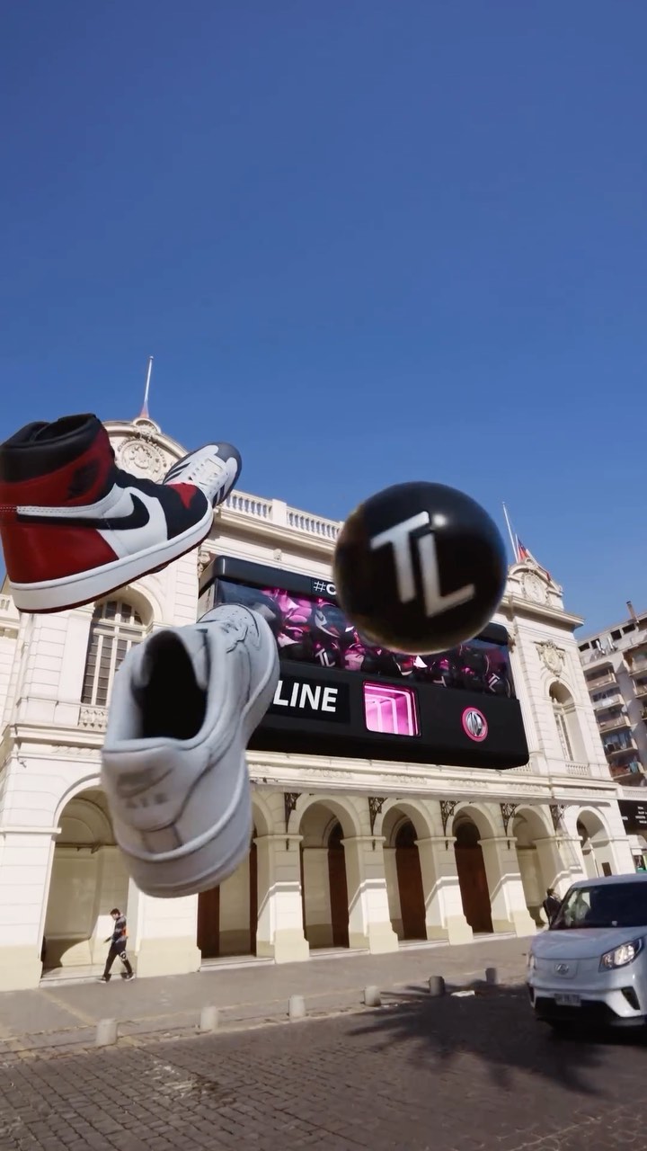A massive tennis ball branded with Shopbop and Nike hovers dramatically over a quiet New York street, transforming the urban landscape into a sporty playground. The oversized ball casts shadows on the sidewalk as a shopper in matching blue athleisure walks beneath, embodying the campaign's sporty-cool aesthetic. This bold FOOH ad announces Shopbop's tennis-inspired pop-up, bringing the excitement of the iconic tournament directly to NYC's streets with unmistakable style and scale.