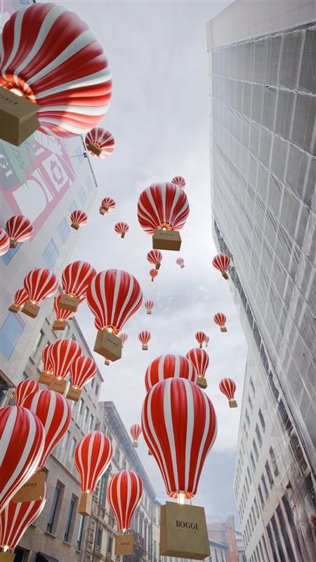 A large Vogue footwear billboard appears on a brick building in a Middle Eastern plaza. It displays men's loafers with the text "WE ARE LIVE" and the company's website. In this FOOH ad, the same shoes from the billboard appear to float in the air in front of a male observer. The campaign effectively connects the digital advertisement to physical space by making the product appear outside the billboard. The setting combines traditional architecture with modern advertising to showcase the brand's new footwear collection.