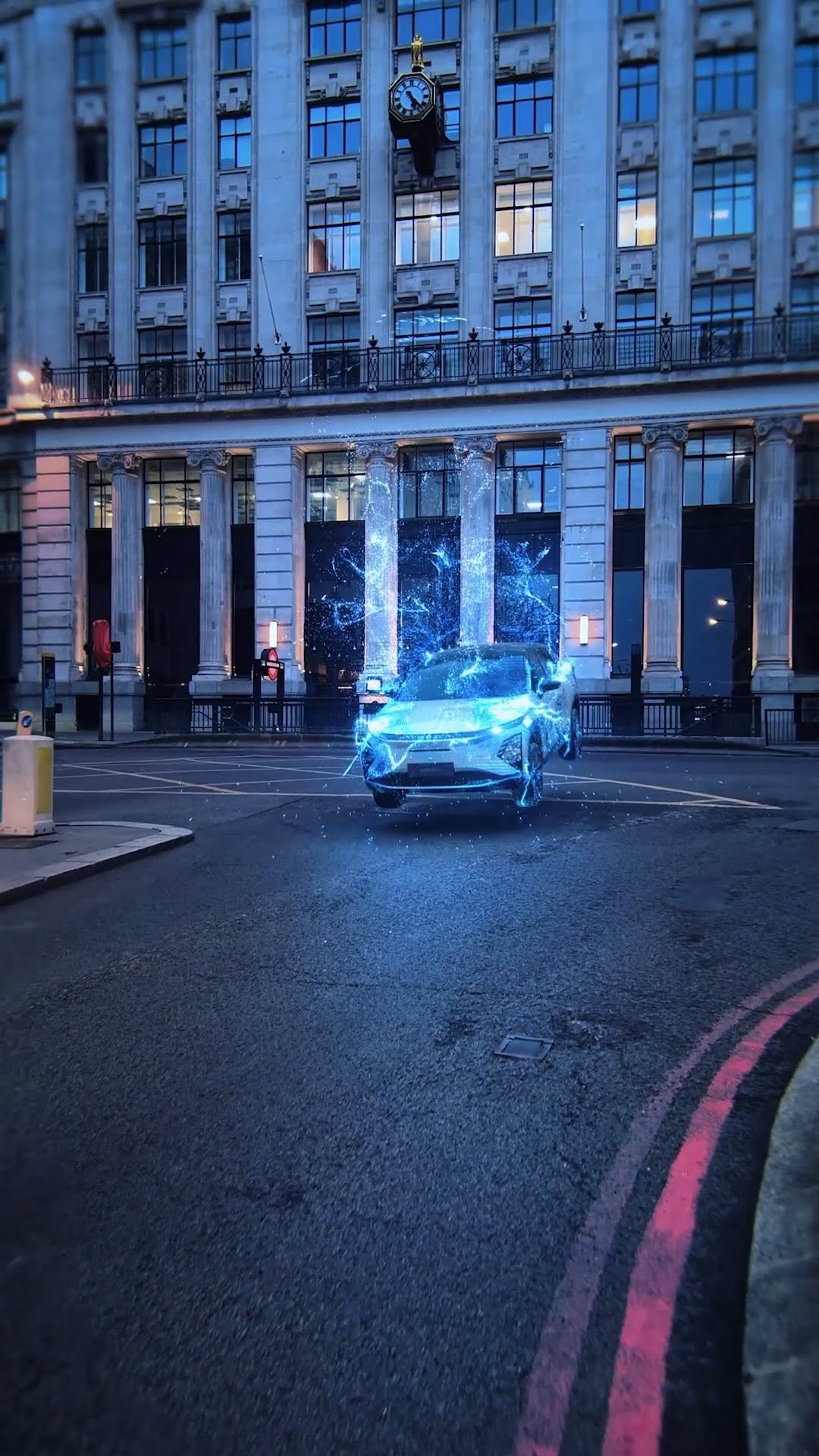 A metallic blue Volvo XC90 emerges from an underground glass-roofed garage, gliding smoothly onto a towering billboard. The car aligns perfectly with the display, its headlights blinking in a dynamic finale that captures the brand's message of "Luxury Without Bling-Bling". This FOOH advertisement transforms urban space, showcasing Volvo's innovative design and understated elegance.