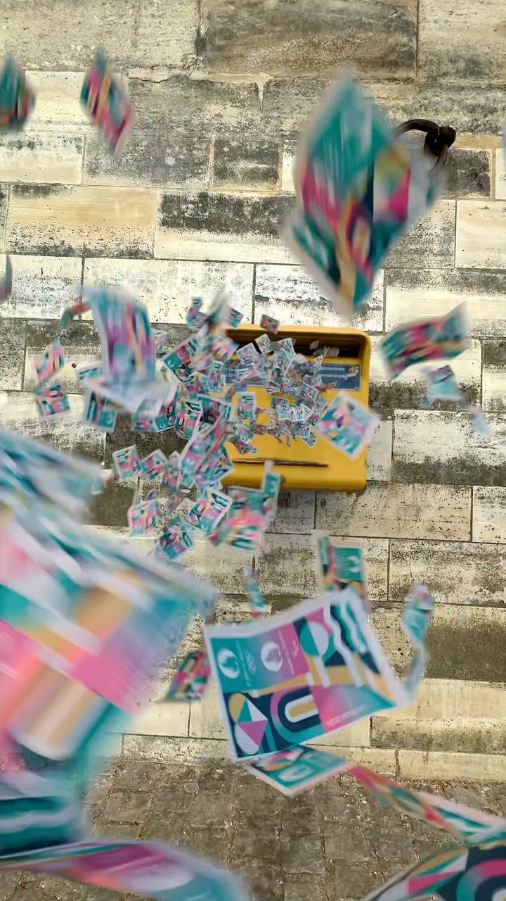 A giant green trading block lifts a person straight up through the city skyline, rising past towering skyscrapers into the clouds above. The massive pillar transforms the street into a live trading chart with glowing green grid lines, while the rider ascends toward unlimited potential. This inspiring FOOH campaign shows how XM elevates traders to new heights, literally lifting them above the competition and proving that with the right platform, the sky is the limit for trading success.
